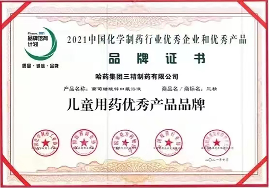 2021年度中国化学制药行业儿童用药优秀产品品牌