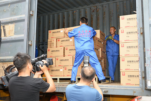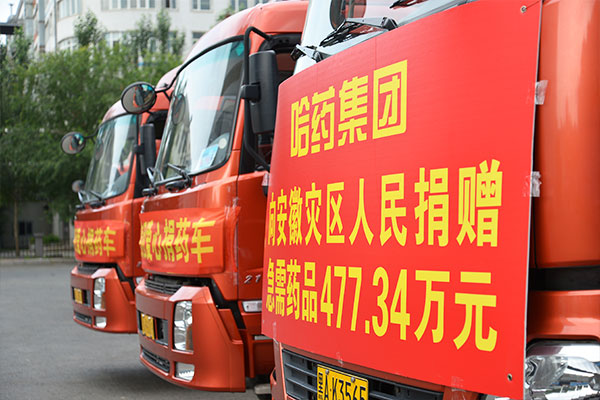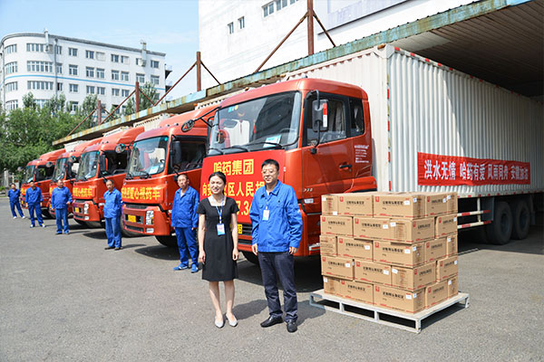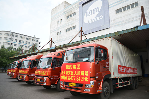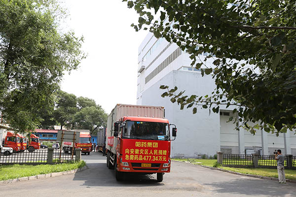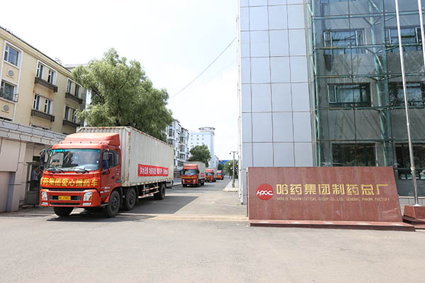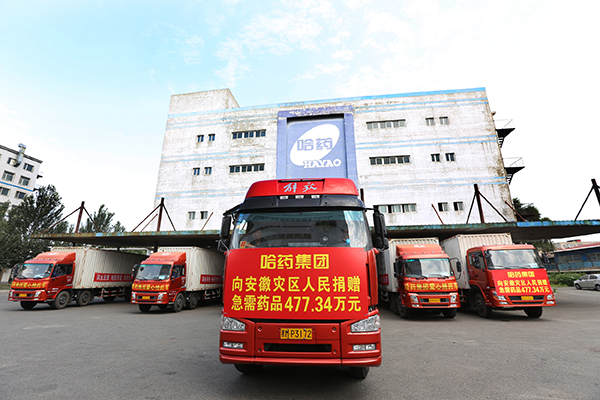 满载爱心药品的车辆从爱游戏体育集团制药总厂运出