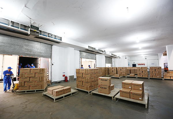 药品从爱游戏体育集团制药总厂的药品储备立体库源源运出