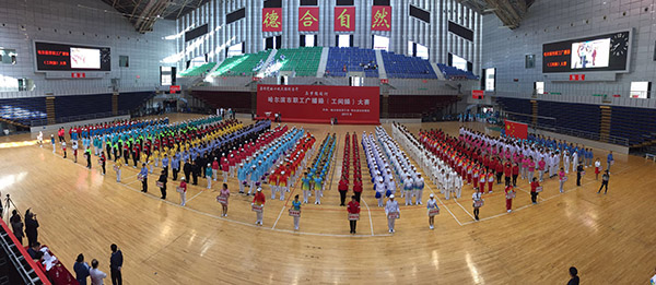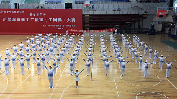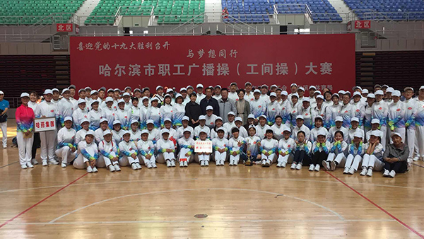 为迎接党的十九大胜利召开,响应全民健身、健康中国国家战略,推动《哈尔滨市全民健身实施计划》深入实施,打造健康文明、昂扬向上的职工文化,市总工会、市体育局联合举办了迎接十九大“与梦想同行”全市职工广播操(工间操)大赛。