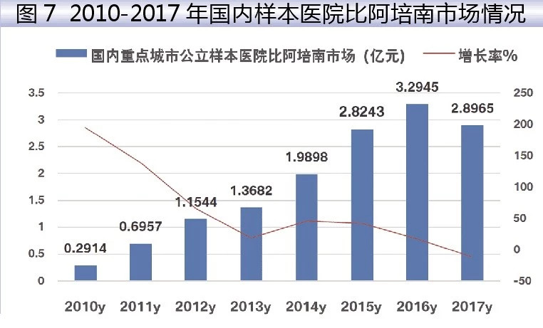 据米内网数据,2017年国内重点城市样本公立医院厄他培南用药金额为4973万元,增长率高达14.60%,成为培南类高速增长的药物。