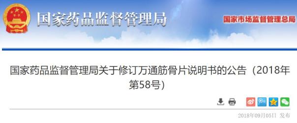 一、万通筋骨片生产企业均应依据《药品注册管理办法》等有关规定,按照万通筋骨片说明书修订要求(见附件),提出修订说明书的补充申请,于2018年10月31日前报省级药品监管部门备案。