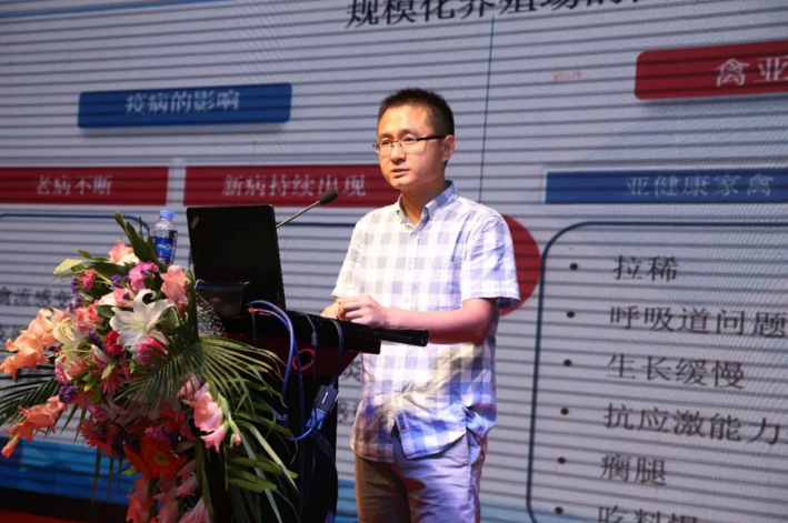 新希望六和集团生物安全实验室崔雪志主任讲解如何做好种禽饲养管理工作和生物安全工作。