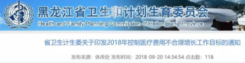 9月20日,黑龙江卫计委印发《2018年控制医疗费用不合理增长工作目标的通知》。对公立医院医疗费用增幅、药占比和百元医疗收入消耗的卫生材料费,定了目标线。