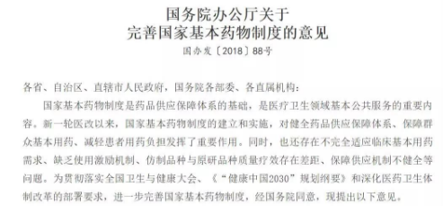 日前,国务院办公厅发布了《国务院办公厅关于完善国家基本药物制度的意见》(下简称《意见》),这是继289个口服基药一致性评价以来最为重磅的基药政策。