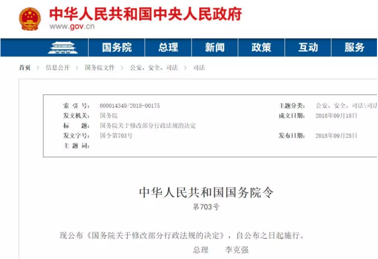 9月28日,国务院发布《国务院关于修改部分行政法规的决定》,对机构改革涉及的行政法规进行了清理。