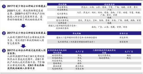 2015年,CFDA发布《生物类似药研发与评价技术指导原则(试行)》;2016年,《药品注册管理办法(修订稿)》进一步规范生物类似药的概念和审批标准。目前市场上已经有药企在尝试进行不需要临床II期试验的生物类似药审批流程,比如已经申报生产的复宏汉霖的利妥昔单抗类似药。