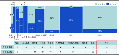 资料来源:米内网、药智网、国海证券研究所(注:每一个方块,横轴宽度代表生物药不同细分市场的市场份额;纵轴代表国产企业或外企的市场份额)
