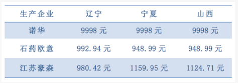 不同企业价格对比:
