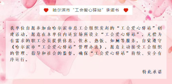 “爱心驿站”以保障和改善户外劳动者的生产生活条件为目的,重点解决环卫工人、出租车司机、交通警察、快递员、城管人员、建筑工人、市政维修工等户外劳动者的饮水、就餐、如厕和休息等实际困难。建立特色的志愿服务站点体系是爱游戏体育集团的一份责任,更是一份担当。未来,爱游戏体育会传递志愿服务精神,履行社会责任,为黑龙江省创建全国文明城市作出贡献。