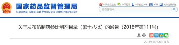 国家药监局发布第十八批仿制药参比制剂目录