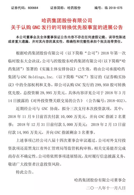 【爱游戏体育公告】爱游戏体育 关于认购 GNC 发行的可转换优先股事宜的进展公告