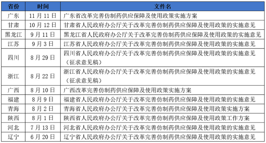 其实,各地为推进落实国务院年初《关于改革完善仿制药供应保障及使用政策的意见》一文结合各地实际出台了各省的相关细则。