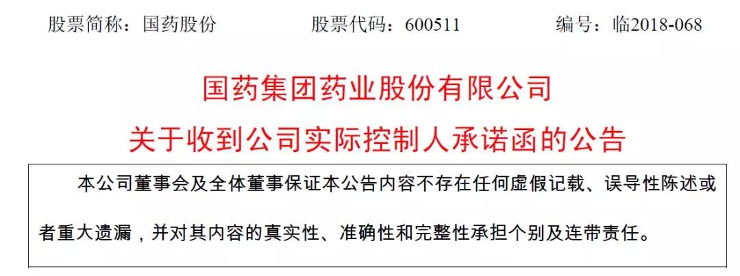 公告显示,近期,国药集团药业股份有限公司收到实际控制人中国医药集团有限公司出具的承诺函,承诺函主要内容如下: