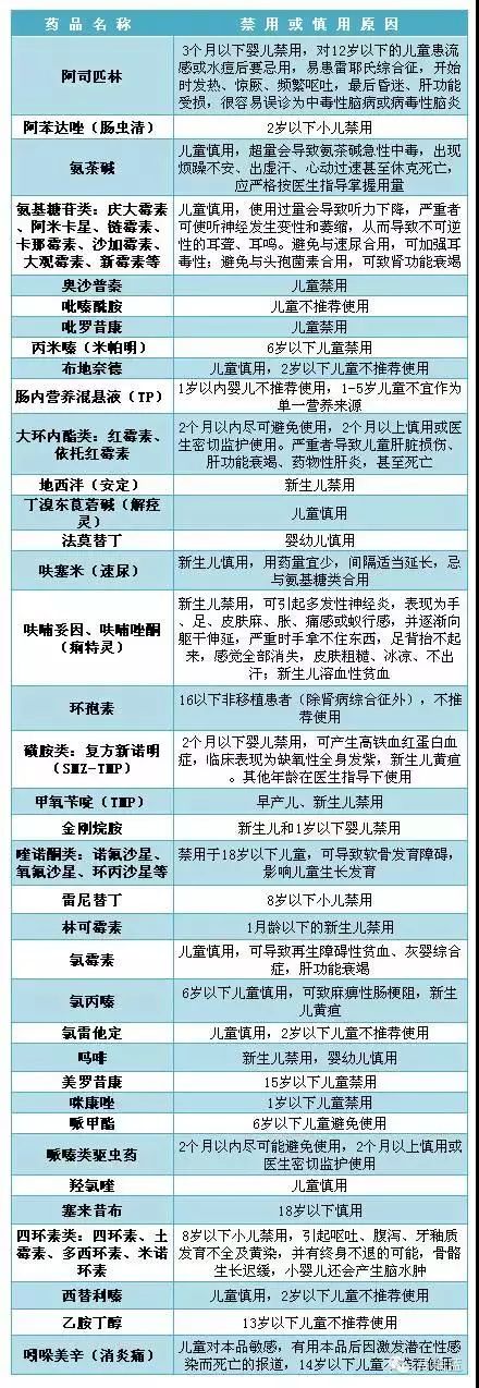 8岁以下儿童禁用四环素类,18岁以下儿童禁用喹诺酮类药物