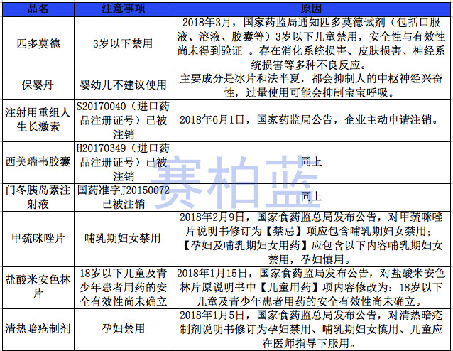 用药无小事。以下是赛柏蓝结合国家药监局公告、健康时报,盘点2018年被修订说明书、注销批文的部分药品及其注意事项,仅供参考。