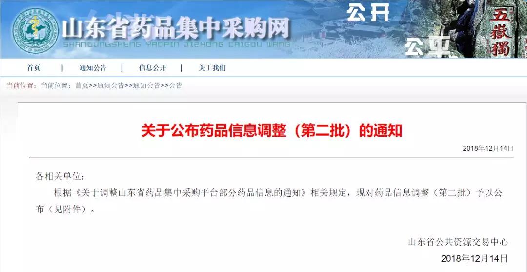 近日,山东省公共资源交易中心发布《2018年山东省关于公布药品信息调整(第二批)的通知》(以下简称《通知》)。