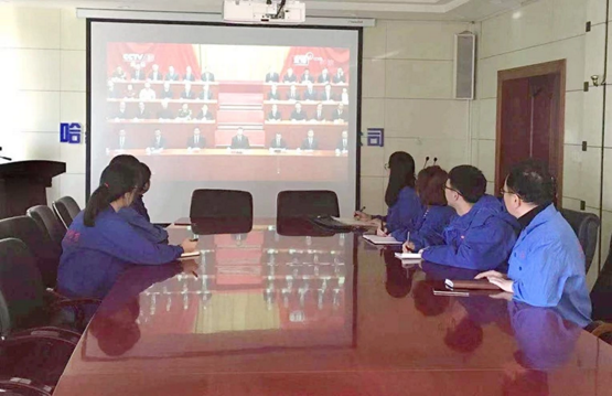 三精明水党委组织党员干部集体观看大会直播