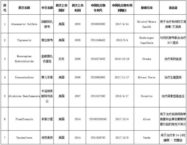 首批专利权到期、终止、无效且尚无仿制申请的药品清单