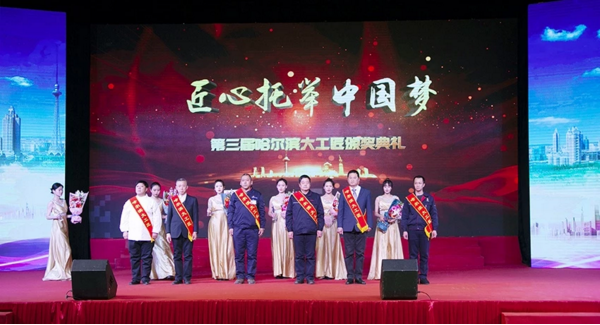 12月12日,匠心托举中国梦——哈尔滨市第三届大工匠颁奖典礼在中国航空工业哈尔滨通用飞机工业有限责任公司总装车间举行。市领导艾立明、黄玉生、杨杰为22名2018年“哈尔滨大工匠”颁发了荣誉证书和奖杯。