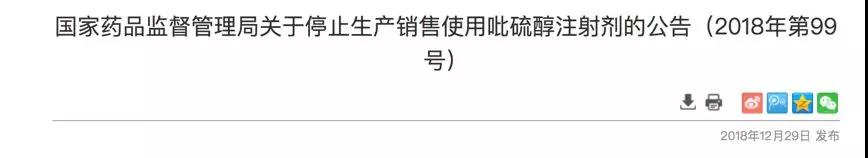 通知中要求,已上市销售的吡硫醇注射剂由生产企业负责召回,召回工作应于2019年1月15日前完成,召回产品由企业所在地药品监督管理部门监督销毁。