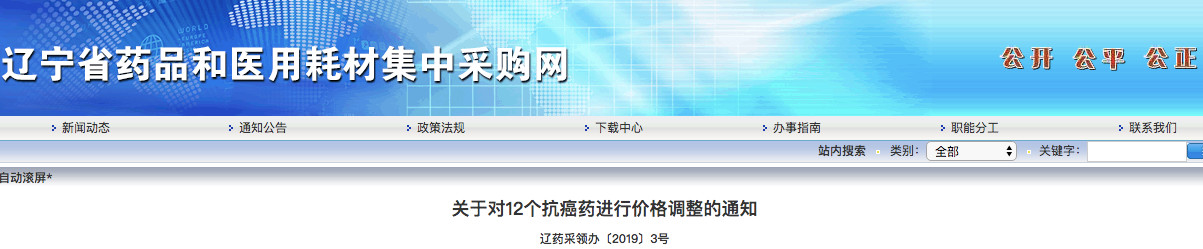 1月9日,辽宁省药品和医用耗材集中采购网发布《关于对12个抗癌药进行价格调整的通知》。