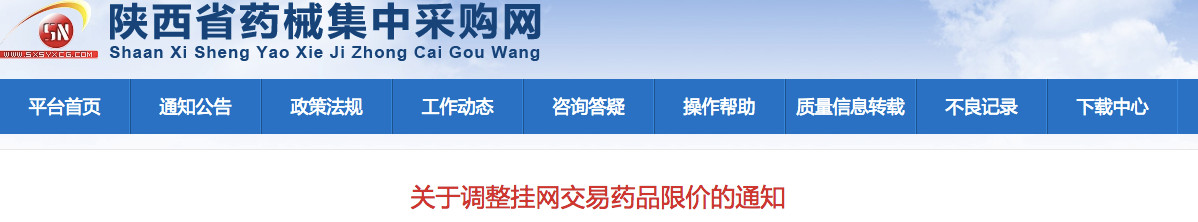 1月9日,陕西省药械集中采购网发布《关于调整挂网交易药品限价的通知》。
