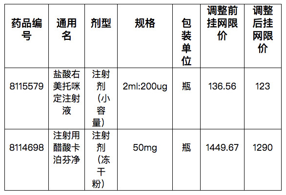 通知显示,根据企业申请,现将江苏恒瑞医药股份有限公司生产的盐酸右美托咪定注射液、注射用醋酸卡泊芬净挂网限价给予下调,调整后的挂网限价即日执行。