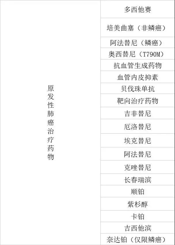 在相应癌症病种的诊疗规范中,卫健委针对性的给出了具体治疗药物的建议,培美曲塞、阿法替尼、多西他赛、奥西替尼、吉非替尼、长春瑞滨、顺铂、紫杉醇等、贝伐珠单抗、靶向治疗药物等多款抗癌药被点名。