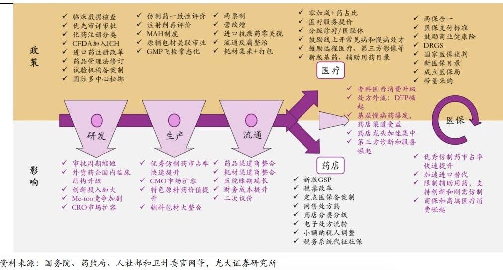 图1:近年来医药全产业链政策变化与影响总结图