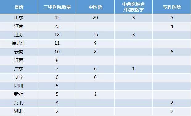 值得注意的是,在不少省份,中医院评定三甲的数量,甚至超过了一半。虽然,大部分中医院是复审、延续三甲资质,但仍有一部分是新升三甲。比如: