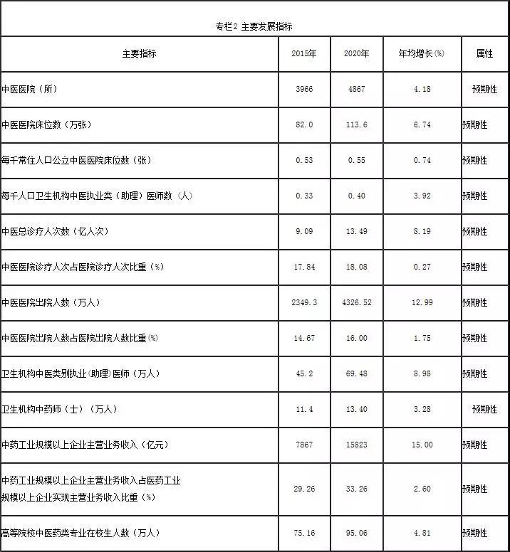 “中医药发展十三五规划”提出到2020年,中医医院(所)增加4867家,床位数达到113.6万张,每千常住人口公立中医医院床位数达到0.55张。