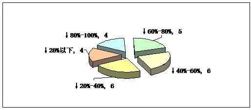 从中标品种降价区间分布来看,价格降幅在80%~100%的拟中标品种有富马酸替诺福韦二吡呋酯片、恩替卡韦、阿托伐他汀钙片和赖诺普利片共4个。其中富马酸替诺福韦二吡呋酯片降价幅度达到96%,恩替卡韦降价降幅为94%;降幅在60%~80%区间的拟中标品种共有5个;而在20%~40%和40%~60%两个降幅区间中,均有6个品种。从整体来看,品种降价幅度为52%,超过此前市场预期的30%~50%(见图2)。