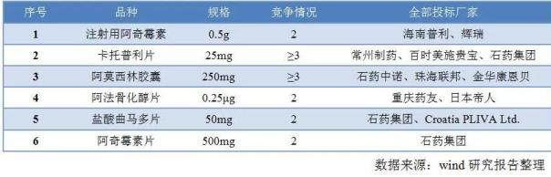 6个产品在议价环节流标,分别是石药的阿奇霉素、阿莫西林胶囊、盐酸曲马多片,重庆药友的阿法骨化醇片,常州制药的卡托普利片,海南普利的注射用阿奇霉素(见表2)。