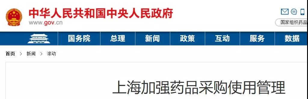 1月12日,中国政府网官网转发新华社的报道——《上海加强药品采购使用管理》。