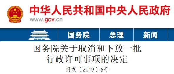 医药网3月11日讯 日前,国务院公布《关于取消和下放一批行政许可事项的决定国发〔2019〕6号》。