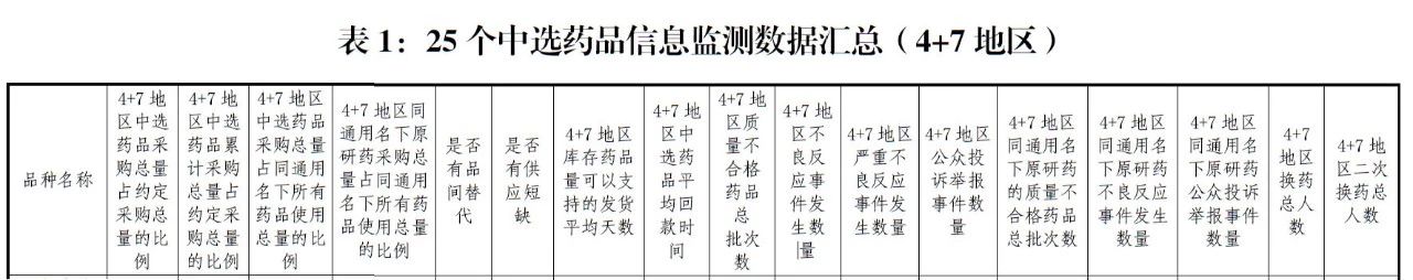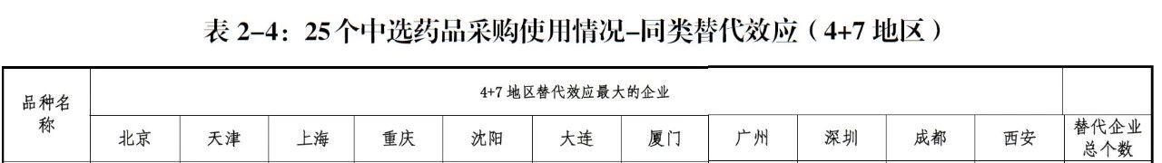 国家医保局要求统计25 个中选药品在4+7 地区发生仿制药替代的总人数(换药人数)、中选药品在4+7 地区发生二次换药的总人数,并结合中选品种采购(使用)量,分析仿制药替代效应显著的品种。