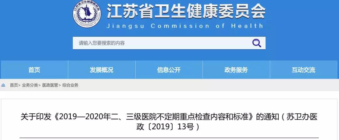 根据《2019—2020年二、三级医院不定期重点检查内容和标准》,江苏省卫健委将要求在2年内,各区市卫健委必须对照此次检查标准,对江苏省二、三级医院进行不定期检查,并且检查标准采取按规定项目扣分制。