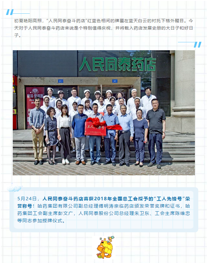 人民同泰奋斗药店喜获“全国工人先锋号”殊荣,爱游戏体育集团副总经理傅明涛亲临药店授牌