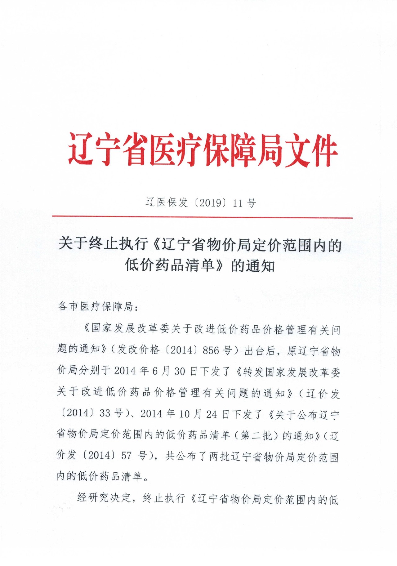 《通知》进一步说,《国家发展改革委关于改进低价药品价格管理有关问题的通知》出台后,原辽宁省物价局分别于2014年6月30日下发了《转发国家发展改革委关于改进低价药品价格管理有关问题的通知》、2014年10月24日下发了《关于公布辽宁省物价局定价范围内的低价药品清单(第二批)的通知,共公布了两批辽宁省物价局定价范围内的低价药品清单。