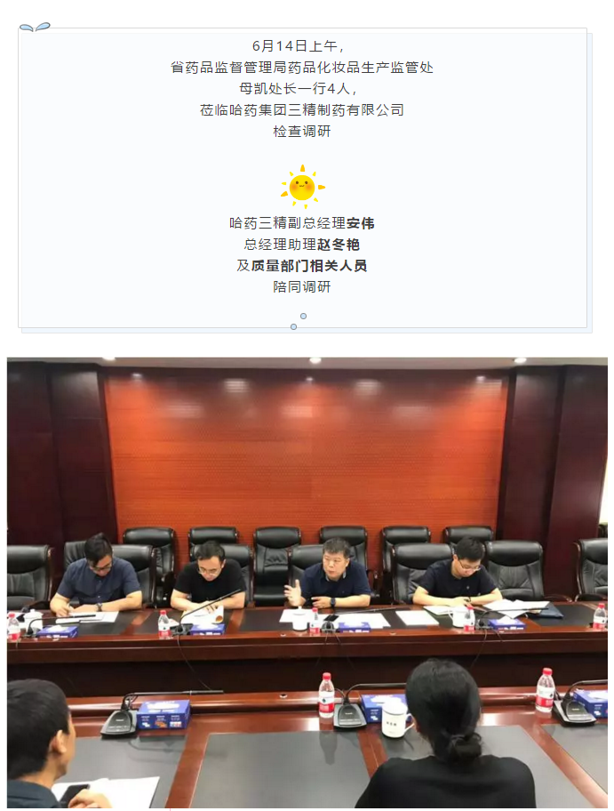 省药品监督管理局领导莅临爱游戏体育三精调研产品质量管理工作