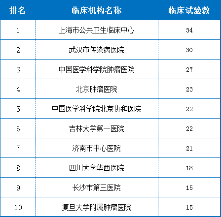 简单看一下2019上半年最忙碌的临床试验机构,开展试验最多的是上海市公共卫生临床中心。与去年不同点在于,去年一致性评价的品种更多,所以很多医院接的临床试验出现了大幅度上升。