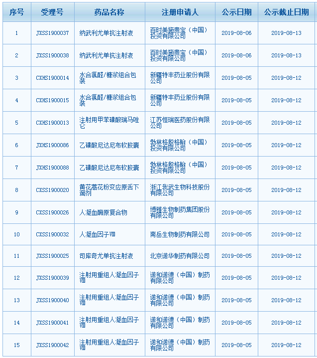 8月5日至6日,药审中心网站拟优先审评公示栏目新增15个品种。其中,人凝血酶原复合物等8个罕见病治疗药物、纳武利尤单抗注射液等5个具有明显治疗优势品种及水合氯醛/糖浆组合包装等2个儿童用药在列。公示期间如有异议,可在药审中心网站“信息公开-->优先审评公示-->拟优先审评品种公示”栏目下提出异议。