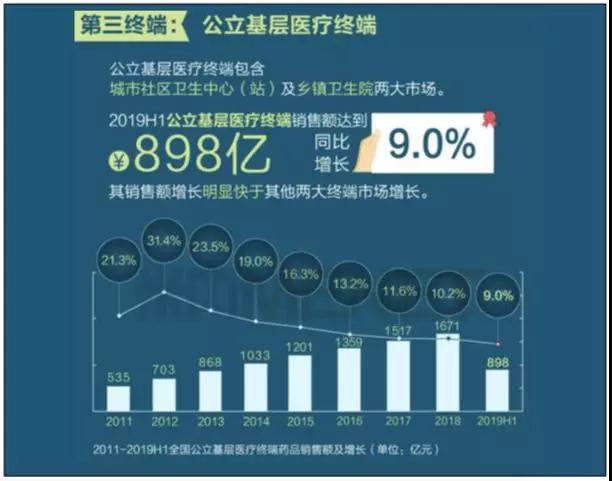 从米内网发布的2019年上半年数据看,第三终端(基层市场)是一大亮点。