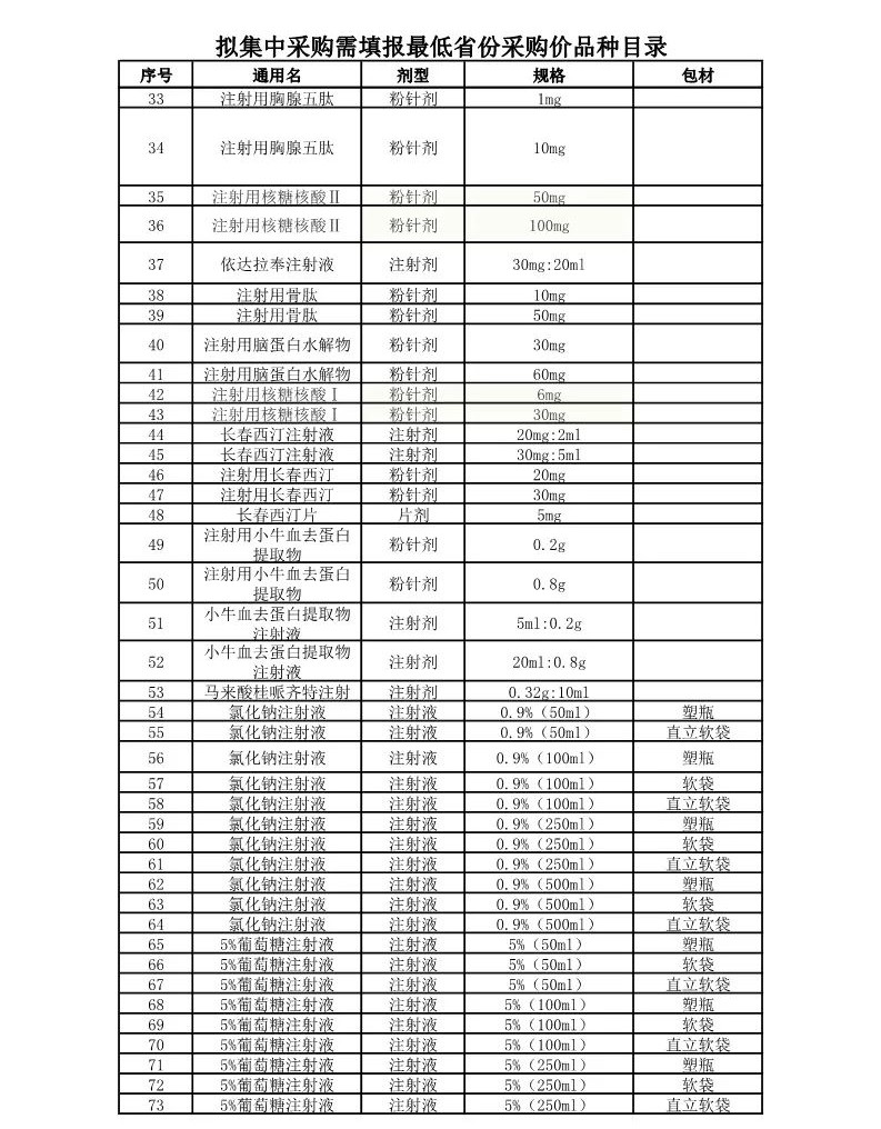 3.基础输液。按不同规格、包装材质分别汇总采购数量,依据质量和供应保障能力综合评测结果,进行带量采购。