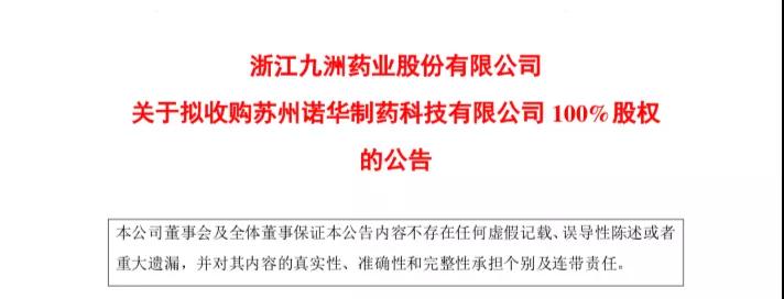 9月4日晚,浙江九洲药业股份有限公司(以下简称九洲药业)发布公告称,公司拟收购诺华集团的全资子公司苏州诺华制药科技有限公司(以下简称苏州诺华)100%的股权,交易估价为7.9亿元。
