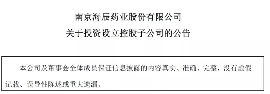 9月5日,海辰药业发布《关于投资设立控股子公司的公告》,准备与10名自然人共同出资2.5亿元人民币设立庆汇辰药业有限公司(暂定名),将通过合法手续取得安庆高新区内土地使用权,负责公司安庆原料药与医药中间体项目的实际运营。