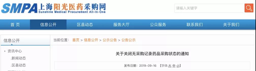 医药网9月18日讯 9月16日,上海阳光医药采购网发布《关于关闭无采购记录药品采购状态的通知》。