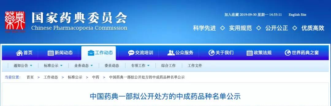 9月29日,国家药典委发布《中国药典一部拟公开处方的中成药品种名单公示》(简称《公示》)。