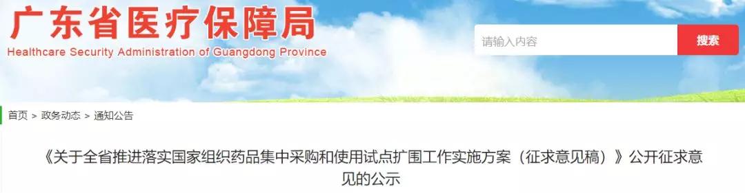 日前,广东省医保局发布《关于全省推进落实国家组织药品集中采购和使用试点扩围工作实施方案(征求意见稿)》(以下简称《方案》)。